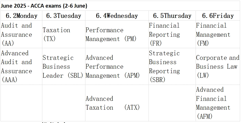 一、2025年6月ACCA季考科目表