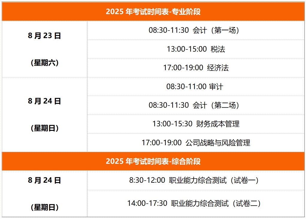 三、2025年cpa考试时间:8月底集中开考,科目分批进行